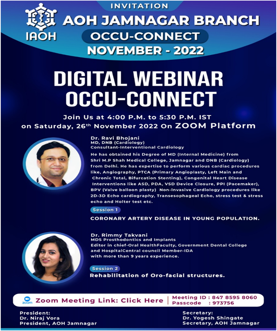 Following Sessions were delivered by eminent faculties & Webinars were moderated by Dr. Rimmy Takvani, Member AOH Jamnagar.